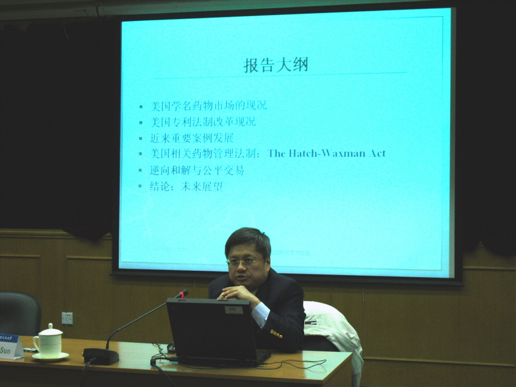 Andy Sun教授曾就职于美国联邦政府,现为美国亚太法律研究院执行长、美国乔治华盛顿大学客座教授、北京大学国际知识产权研究中心研究员。报告会中,Andy Sun教授结合近年来重要案例和美国专利改革法草案详细为大家讲述了美国专利权的保护及专利权在美国的实施情况、美国专利法制改革及最新发展等相关内容。