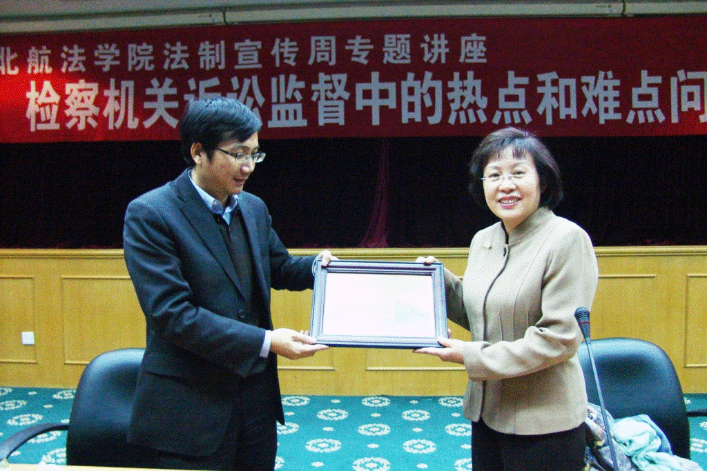 2009年12月9日,北京市检察院副检察长甄贞应威廉体育williamhill邀请做客“北航法制宣传周”,为威廉体育williamhill师生作题为 “检察机关诉讼监督中的热点和难点问题及对策”的专题讲座。威廉体育williamhill经理龙卫球主持讲座。