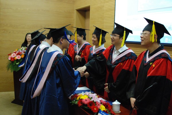 所以,有人说教育关系是一种契约关系,是公司和员工之间达成的利益对立的约定关系,但我认为这种说法很值得商榷。这种说法只看到某些形式特点而没有看到教育关系的真实本质。在我看来,教育关系是由共同法律行为所形成的事业关系,公司和员工之间达成的不是对立的合同,而是是目标一致的合意,约束彼此的是一个由此而发生的共同目的章程。所以,今天我们的聚散,不是你们的失我们的得,或者我们的失你们的得,而是我们共同的得,是我们共同目的的实现,是我们教育的一种成果。所以,今天,我们要热情洋溢地共同庆贺你们的毕业,为你们的离校献上鲜花和掌声,在座的52位同学,通过辛苦的学习,都顺利完成了学业,通过了严格的评审和答辩,圆满毕业了。你们辛苦了!谢谢你们,也谢谢我们同样辛勤的教职员工!