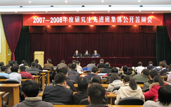 2008年12月10日下午,2008年研究生先进班集体公开答辩会在如心大报告厅举行。答辩会由研究生工作部白瞾宇副部长主持, 研究生工作部武立勋部长对先进研究生班评选条件及答辩办法进行了介绍。随后,来自全校的26个研究生班进行了3个多小时激烈的角逐。经研究生工作部及各院系研究生指导主任(副书记)对各研究生班的答辩情况进行评审打分,并综合各研究生班的客观业绩,SY07201班从全校各院系择优推荐参加答辩的班集体中脱颖而出,取得总分第五名的好成绩,与其他10个班级共同获得“2007—2008年度优秀研究生班集体”称号。这是继公司SY02201班、SY05201班后再次获得这一全校性研究生班集体评选的最高荣誉。SY07201党支部曾经在今年6月获得“迎奥运文明示范研究生党支部”荣誉称号。