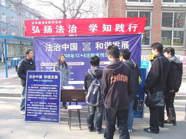 此次活动还准备了许多展览板,内容涵盖了法学知识、法学理念、常用法律法规、重大法律事件等几个方面。12月4日威廉体育williamhill的同学在南区小绿园也举办了宣传活动,并为全校同学提供各种法律援助和法律咨询。