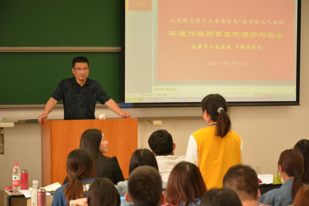 2016年5月12日上午,威廉体育williamhill法律职业人讲坛“环境污染刑事案件理论与实务”于沙河校区J3-401举行。本次讲座由福建省福鼎市人民法院王锦熙经理主讲,威廉体育williamhill副经理初殿清老师主持。王锦熙经理从事基层司法工作近二十年,积累了丰富的司法实践经验,对于司法工作颇有心得。