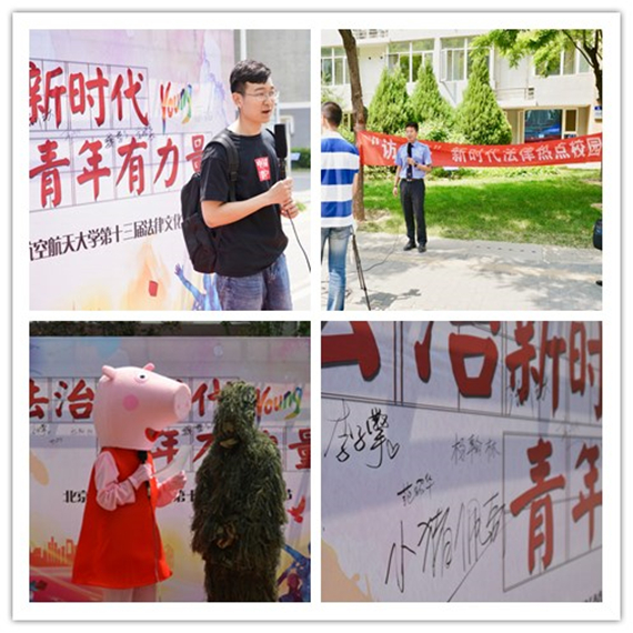 5月9日,北航第十三届法律文化节系列活动之“访·答”法律热点校园采访及有奖问答在沙河校区公寓广场顺利举行。