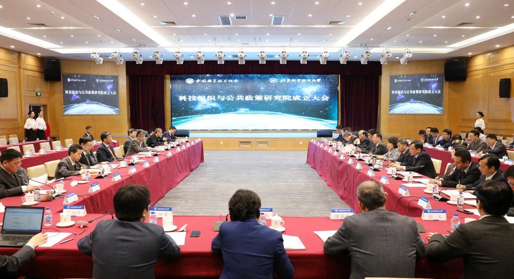 怀进鹏对研究院的成立表示热烈祝贺。他指出,全球科技革命与产业变革的兴起、中国经济社会的转型,使科技支撑引领高质量发展的战略地位更加凸显。伴随着数字化、网络化、智能化的快速发展,科技与经济社会加速融合,数字、物理与生命世界的有效结合催生跨界创新。加强智库建设,推动有目标、有组织的战略合作,促进科技与产业、经济、社会、文化的融合发展,是中国科协的职责使命。他强调,有效的科技组织与公共政策,是推动科技进步与创新的重要基础保障,此次双方共同建立科技组织与公共政策研究院,是深入贯彻中央重大决策部署、实施国家创新驱动发展战略的需要,合作将以学科交叉融合的视角,深入探索科技产业变革中全球科技组织的功能结构特征与发展趋势,为党和政府制定科技公共政策提供决策咨询,为全球科技治理体系建设提供高水平公共智库服务。他希望双方以此次合作为契机,搭建一流智库平台,做出更多符合时代需要、符合国情、符合国际发展需求的高质量研究,为科技服务经济社会发展做出新的贡献。
