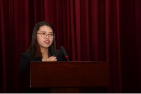表彰和颁奖后,王永茜老师作为教师代表发言。王永茜老师以“法律是一种职业,也是一种召唤”为主题,首先肯定了各位毕业生为治学所付出的辛勤努力,表达了对全体毕业生即将迈向人生新旅途的殷切祝福。其次从自己的职业经历切入,指出找准理想的工作定位对法律职业者的重要作用,又结合“召唤”的含义向大家发出了提升自我、奉献社会的号召。在发言的末尾,王永茜老师嘱咐大家既要学会在工作上善待自己、善待他人,也要享受生活。王永茜老师的发言风趣幽默又饱含深情,赢得了在场毕业生们的阵阵掌声。
