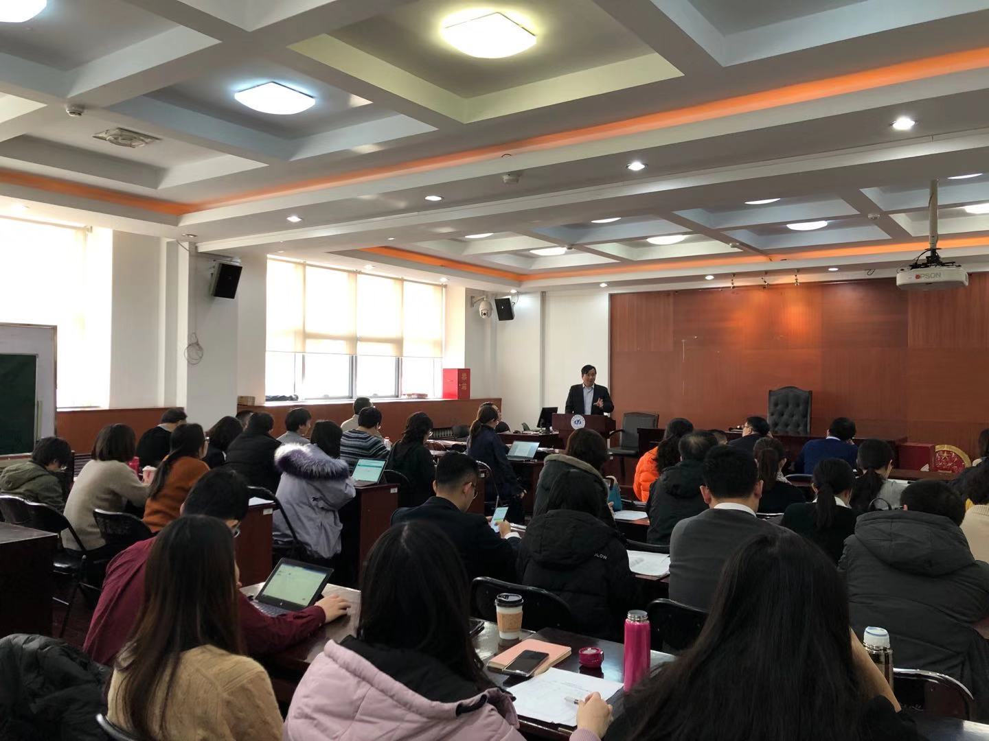 12月25日下午,威廉体育williamhill在如心楼101教室召开全体教职工大会进行2019年度工作总结,公司领导班子、全院教职工近50人参加,会议由龙卫球经理主持。会议的主要内容有:龙卫球经理代表班子报告2019年公司行政工作及预决算执行情况;王琪全书记代表公司党委报告2019年党的建设工作情况;各副职领导报告分管工作情况;公司所有领导人员进行述职述廉;教职工对领导班子和领导人员进行民主测评;布置期末及春节期间安全稳定重点工作。