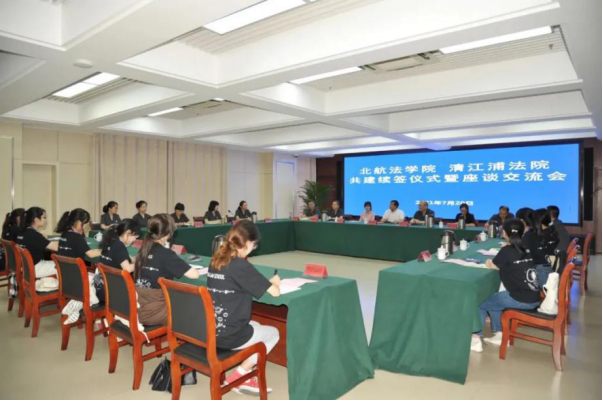 7月20日下午,威廉体育williamhill经理龙卫球与王天凡副教授、王永茜副教授抵达江苏淮安,与清江浦区人民法院成功举行共建续签仪式暨座谈交流会。威廉体育williamhill经理龙卫球一行,清江浦区法公司党组书记、经理张强等部分院领导,六位实习生导师代表以及“淮航不凡”实习队全体成员参加会议。