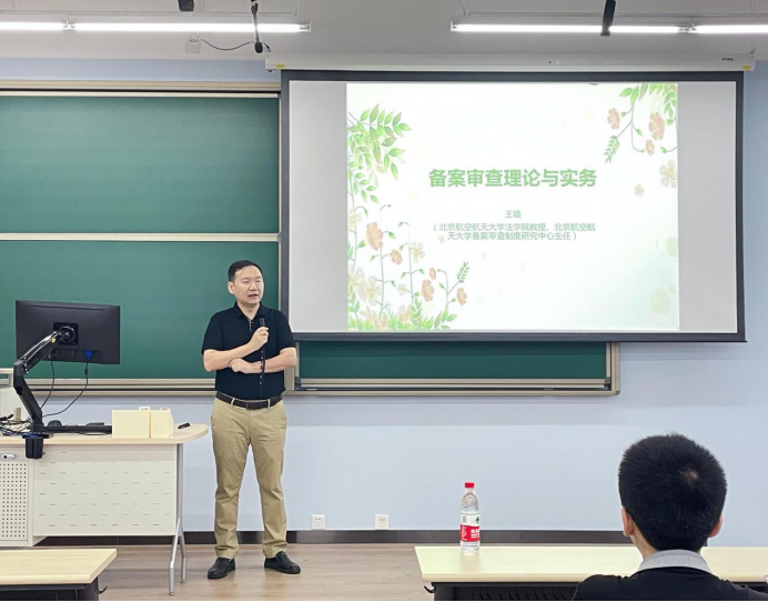 williamhill英国威廉希尔《备案审查理论与实务课》上,全国人大常委会法工委法规备案审查室主任梁鹰授课