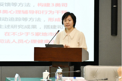 会上,北京师范大学心理学部李非寒博士就司法人员心理压力模型及心理辅导和行为干预方案作了主题报告,从司法人员心理压力模型构建、心理压力评估工具、心理辅导方案与行为干预策略、心理健康水平提升结果等方面报告了项目成果。