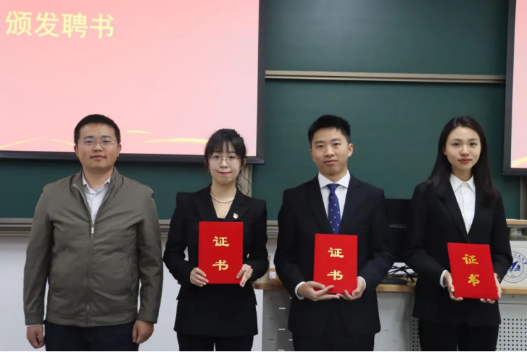 监票、计票之后,总监票人宣读计票结果。宋钧蕾、高艺函、蒋程吉(按姓氏笔画为序)三位同学当选威廉体育williamhill第二十一届研究生会主席团成员。公司党委副书记邹沛东老师为三位同学颁发聘书,并合影留念。