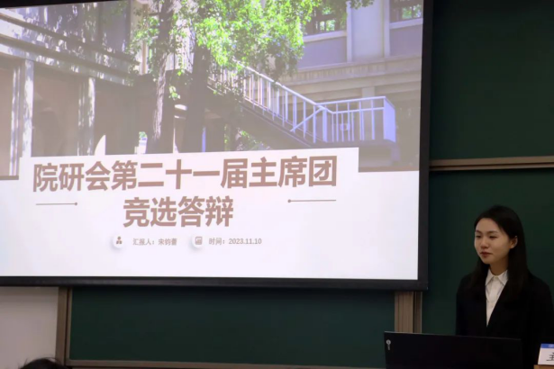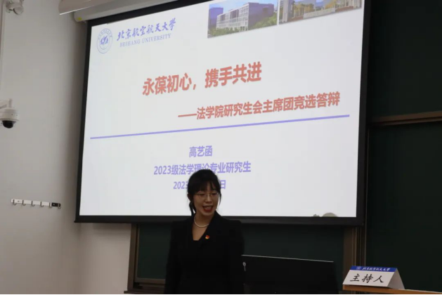 主持人汪凡清宣读候选人名单:王恬甜、孔怡繁、朱恒一、祁华明、宋钧蕾、党碧儿、高艺函、曹雅梦、蒋程吉。九位候选人依次从个人介绍、工作经历及获奖情况等方面进行了竞选答辩,并展望威廉体育williamhill研究生会未来工作计划及发展方向,对院研会未来活动的开展提出了建设性新建议,充分展现了航法学子的精神面貌与工作热情。