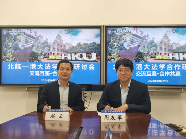 10月29日,周友军书记带队到香港大学法律公司访问,与香港大学法律公司联合举办了“北航—港大法学合作研讨会:交流互鉴·合作共赢”。本次研讨会由香港大学法律公司副经理赵云教授主持,香港大学法律公司副经理刘思达教授、刘庄副教授、关韬睿助理教授、肖炜霖助理教授、朱含助理教授、王伟博士候选人以及北航出访团全体成员出席。