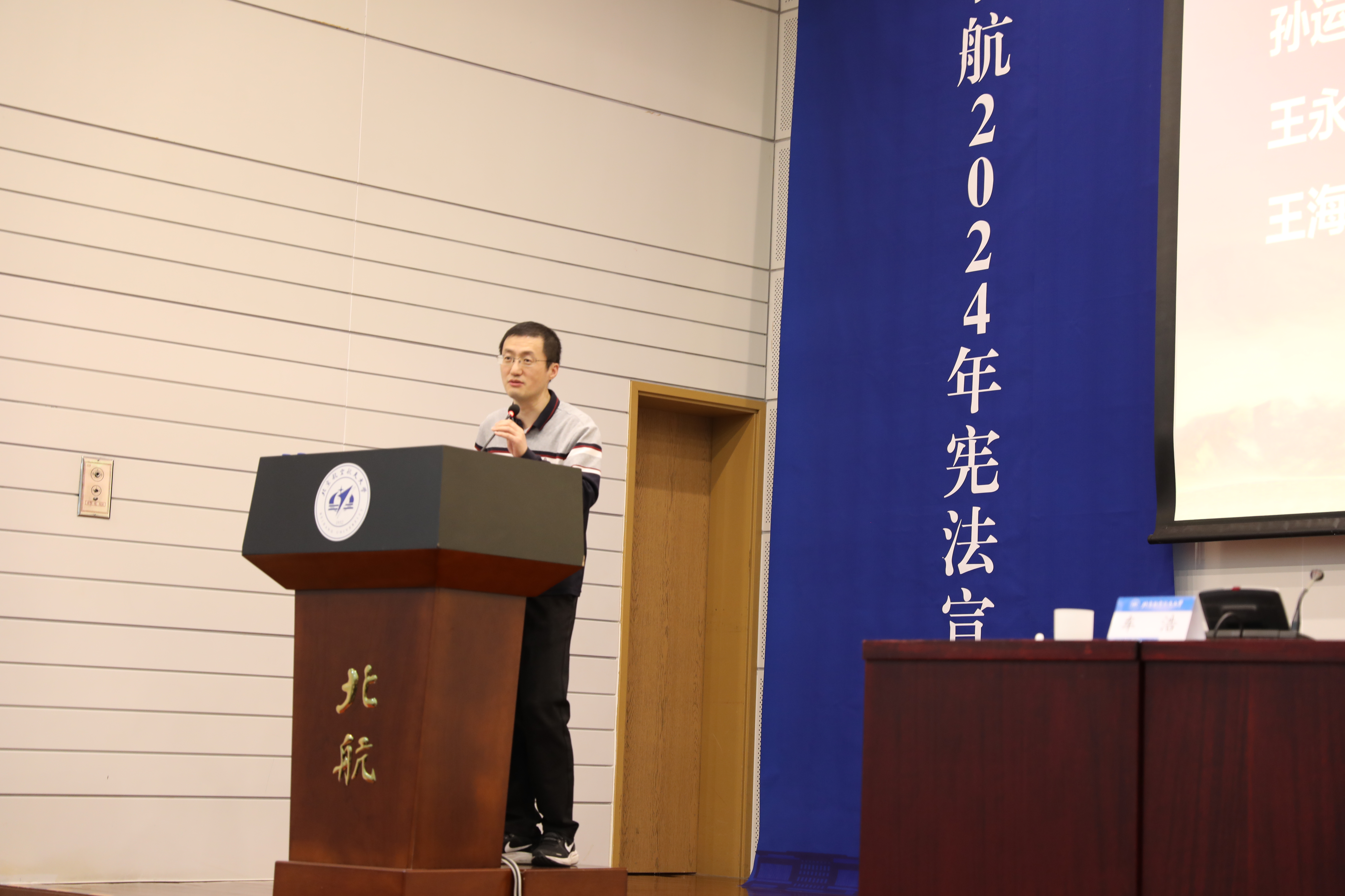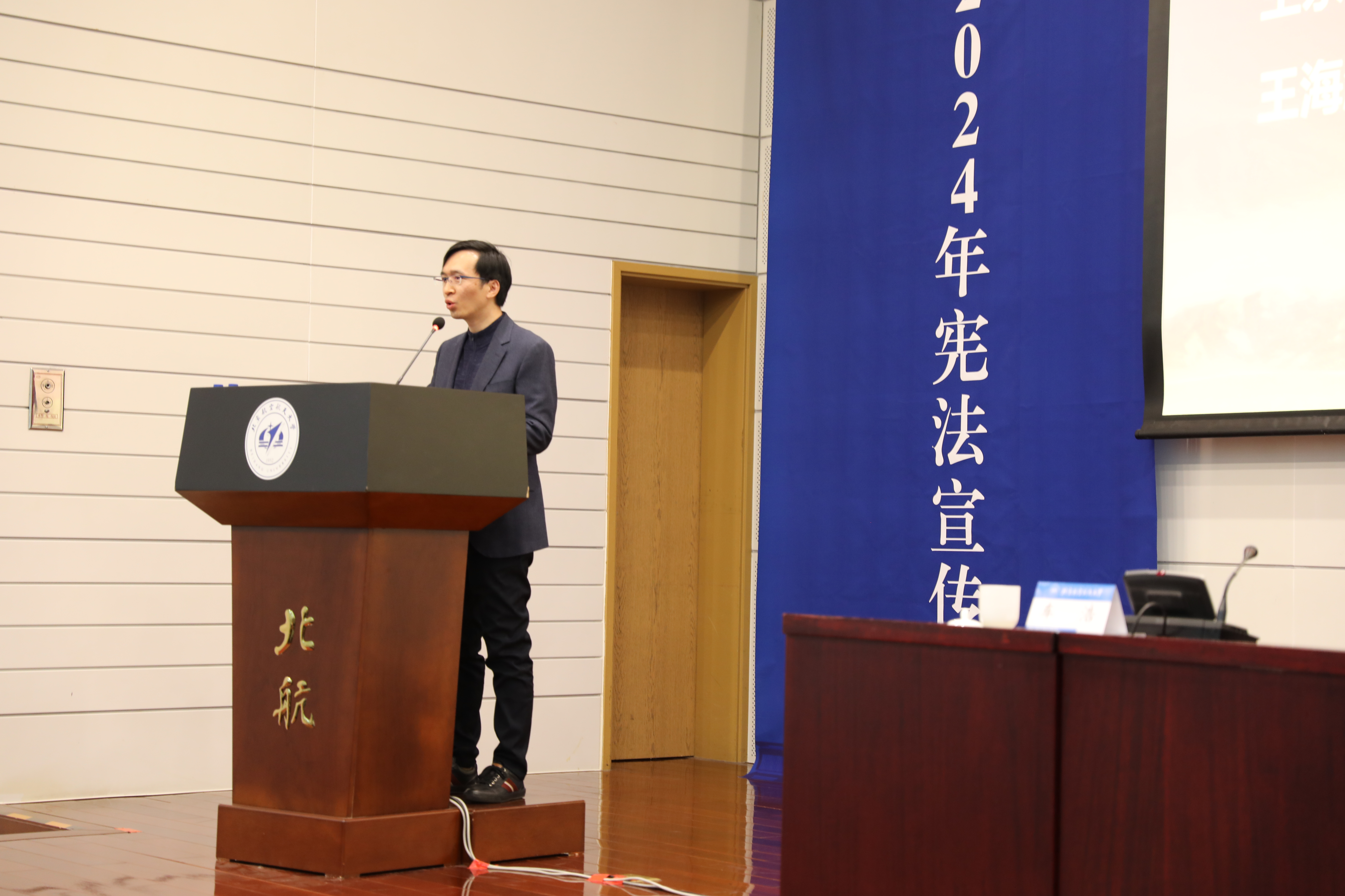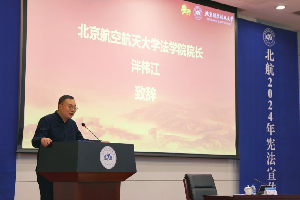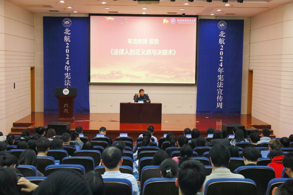 11月29日,williamhill英国威廉希尔2024年宪法宣传周开幕讲座在新主楼第二报告厅举办。本次宪法宣传周以“大力弘扬宪法精神,推动进一步全面深化改革”为主题,特邀北京大学威廉体育williamhill副经理车浩教授作开幕讲座。公司党委常委、宣传部部长李建伟,公司党委书记周友军,经理泮伟江,党委副书记邹沛东,刑法中心主任孙运梁,刑法中心副主任王永茜、王海涛,专职辅导员夏梦彤出席,来自北航各学科的本研员工共同参加。开幕讲座由周友军主持。