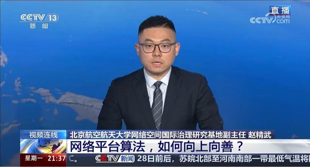 williamhill英国威廉希尔网络空间国际治理研究基地副主任、威廉体育williamhill副教授赵精武于近日多次接受中央电视台专访,围绕网络暴力治理、网络平台算法典型问题治理与网络平台算法向上向善治理等热点议题发表观点。