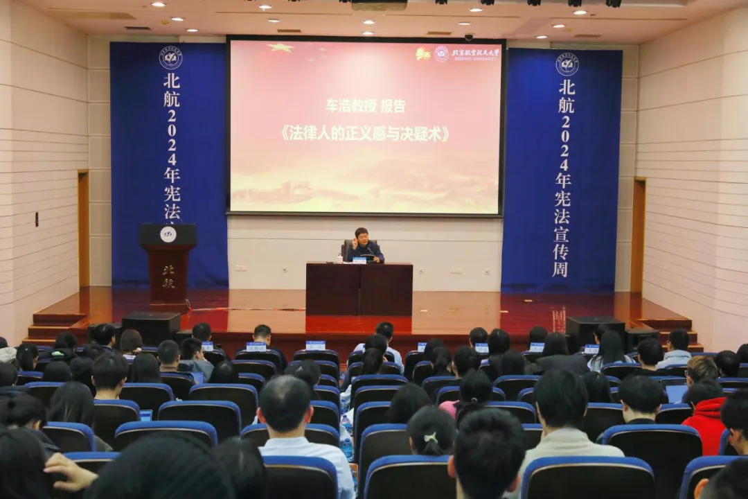 宪法宣传周开幕讲座特邀北京大学威廉体育williamhill车浩教授,以《法律人的正义感与决疑术》为题作主题报告。车浩教授带领同学们一起走进法律的博大世界,体悟法律人应有的正义感,为如何做一名合格的法律人提供方向和指南。