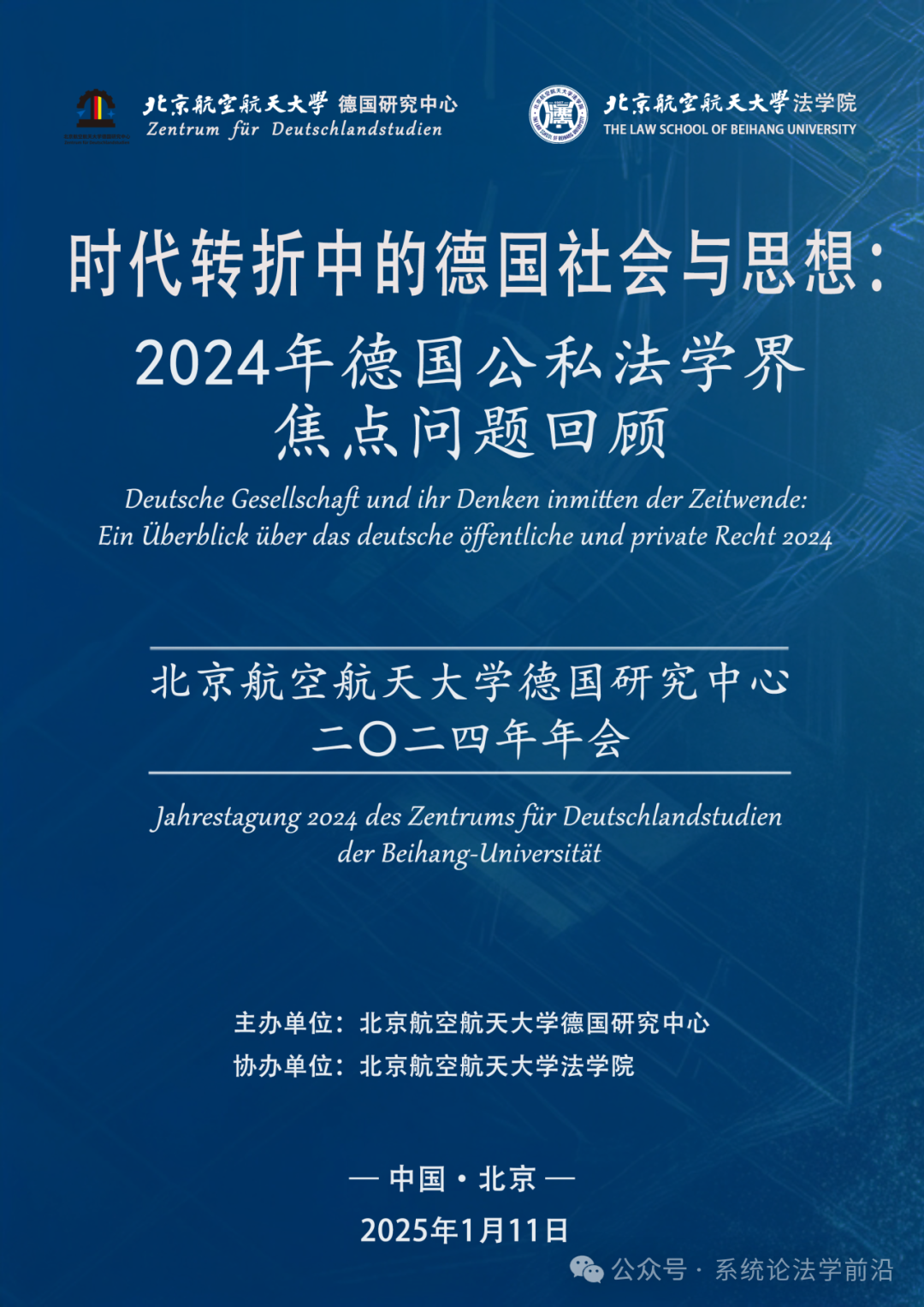 “时代转折中的德国社会与思想:2024年德国公私法学界焦点问题回顾”Deutsche Gesellschaft und ihr Denken inmitten der Zeitwende: Ein Überblick über das deutsche öffentliche und private Recht 2024