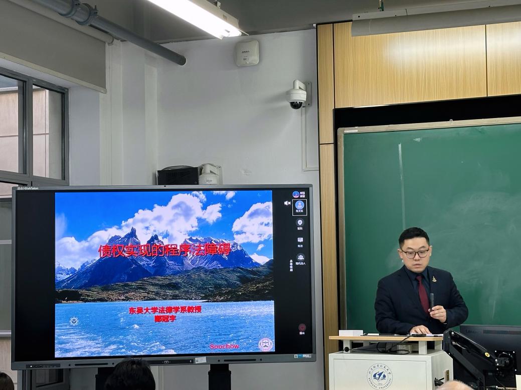 讲座伊始,赵精武副教授对主讲人及与会嘉宾进行介绍,周友军教授对郑冠宇教授的到来致以热烈欢迎。随后,郑冠宇教授从“对抗流抵之债权”“对抗优先购买权之债权”“对抗破产之破产债权”三个方面,以法律规范为依托、结合争议案例进行讲授。