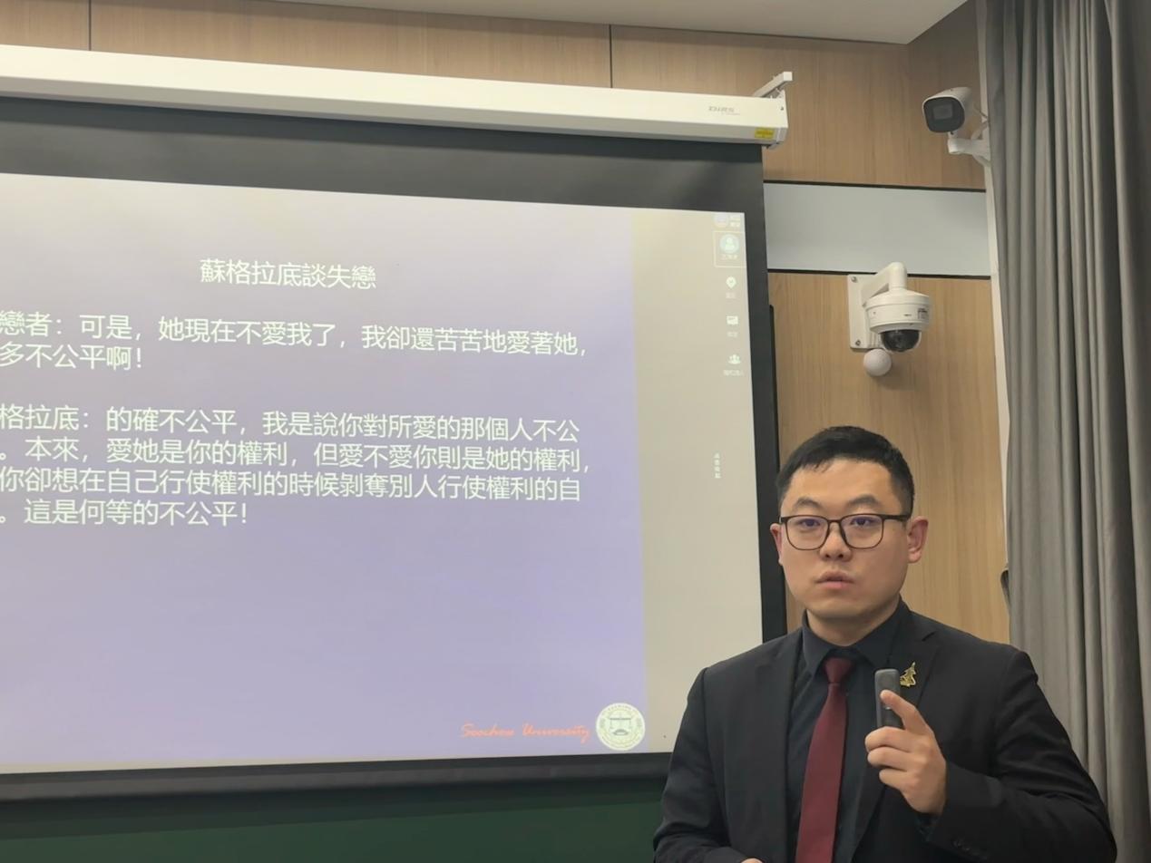 在苏格拉底的审判和死亡中,郑教授看到了法律人应有的冷静和理性。苏格拉底面对不公正的指控和死亡判决时,依然保持了哲学家的风度,用对话和提问的方式,展现了对真理的不懈追求和对死亡的超然态度。他鼓励员工们不论遇到多么严酷的挑战或不公正的待遇,也要努力保持冷静和客观,培养自己的道德勇气和哲学智慧,能够做到不卑不亢,坚守正义。