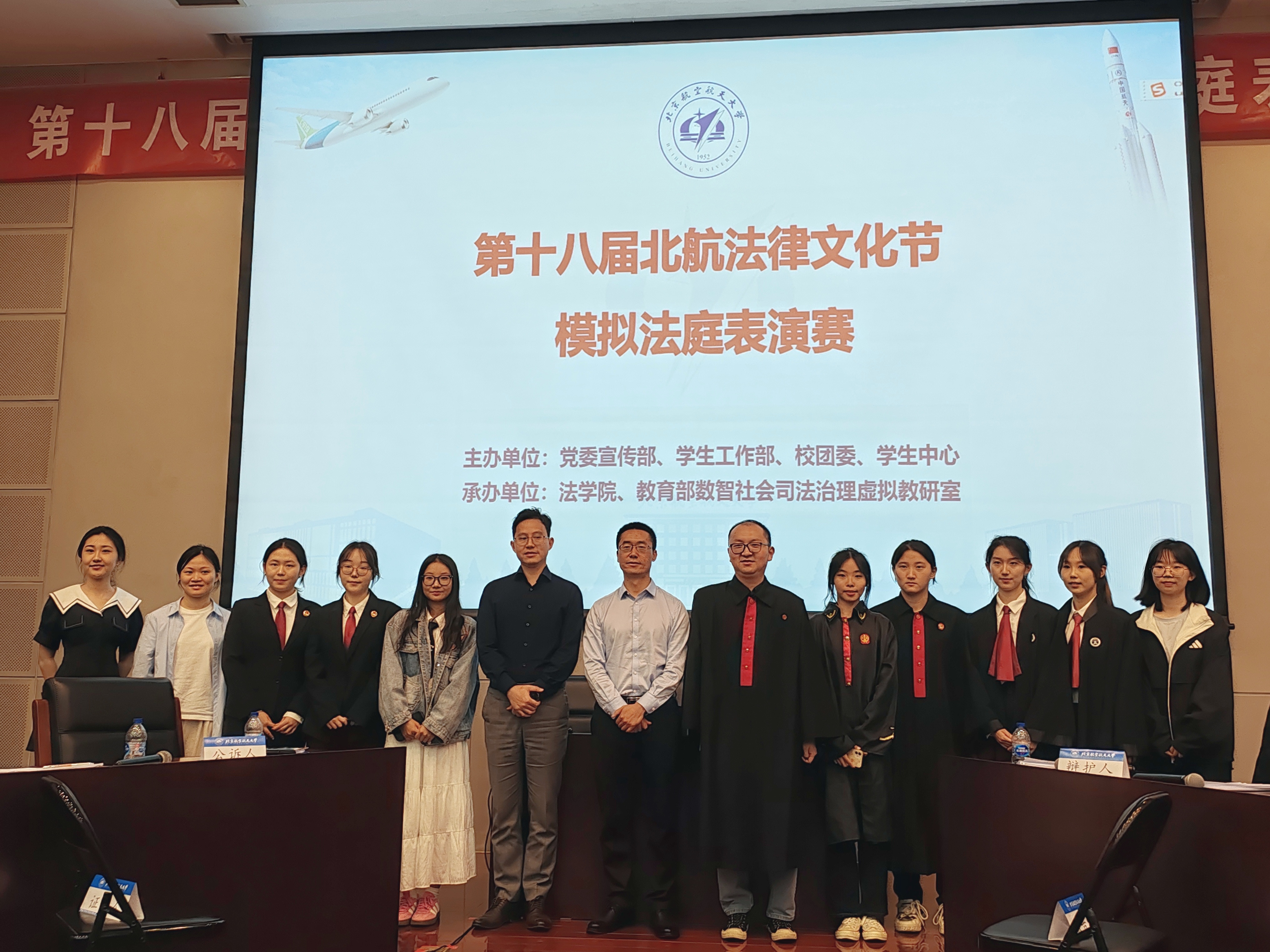 5月14日,第十八届北航“法律文化节”模拟法庭表演赛在公司路校区新主楼第一报告厅举办。本次表演赛以“全民陪审团”博雅课程形式举行,由2022级北航模拟法庭队的6位队员倾情演绎。北航模拟法庭队指导教师吉冠浩副教授担任审判长,北京周泰律师事务所高级合伙人薛永奎律师、合伙人何宝明律师应邀出席并点评。活动由威廉体育williamhill2023级本科生宫伟佳主持。