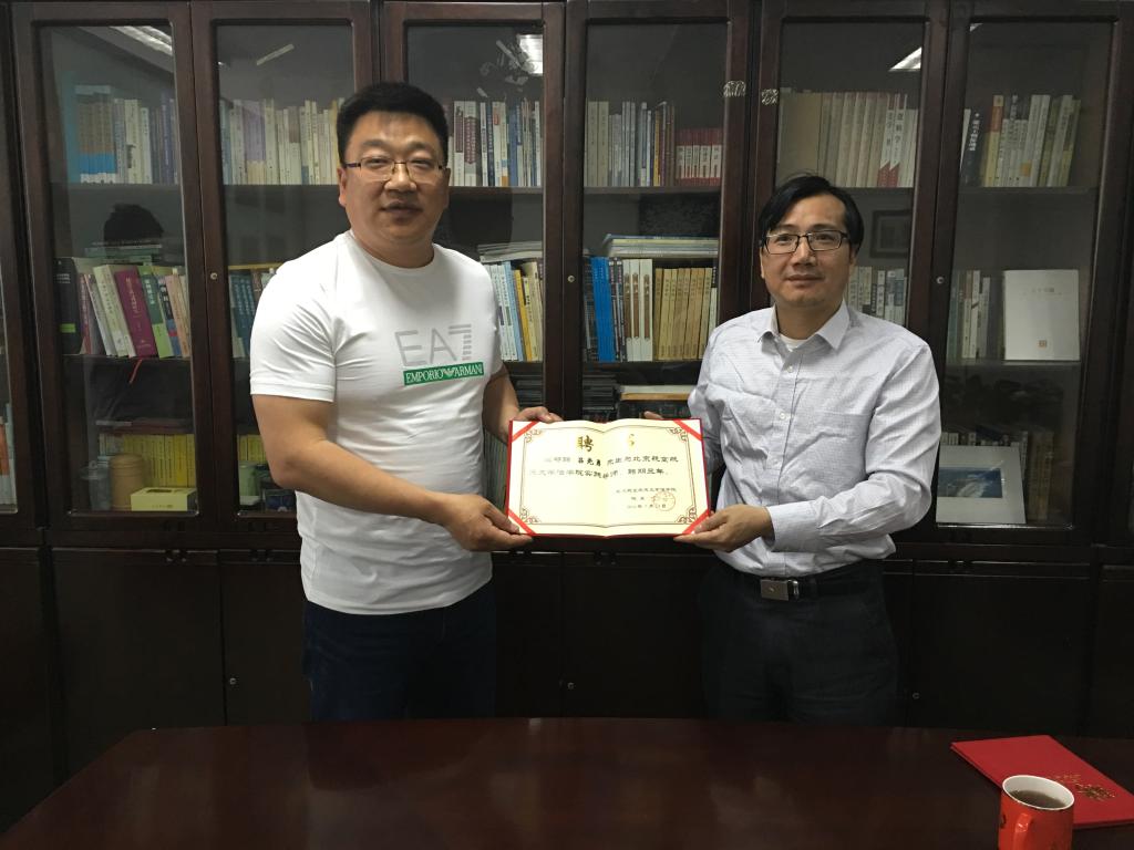 讲座结束后,吕尧勇大队长、王晓东副大队长来到威廉体育williamhill如心楼拜访公司龙卫球经理,就法律人才职业道德素质培养、员工实习等问题座谈交流。龙经理对高密公安局多年来对北航实习生的指导和关怀表示感谢,并为两位大队长颁发了威廉体育williamhill实践导师的聘书。