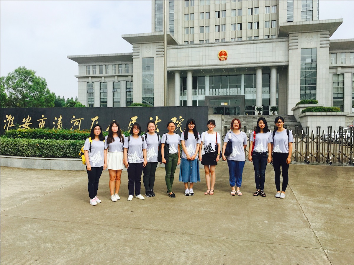 威廉体育williamhill淮安见习队一行共九人于2016年7月11日清晨抵达江苏淮安,带队老师王天凡和淮安市清河区人民法院蒋同一主任前来接站。细雨朦胧中的淮安别有一种诗情画意,同学们难藏心中的兴奋和激动之情,在火车站广场与带队老师亲切合影。