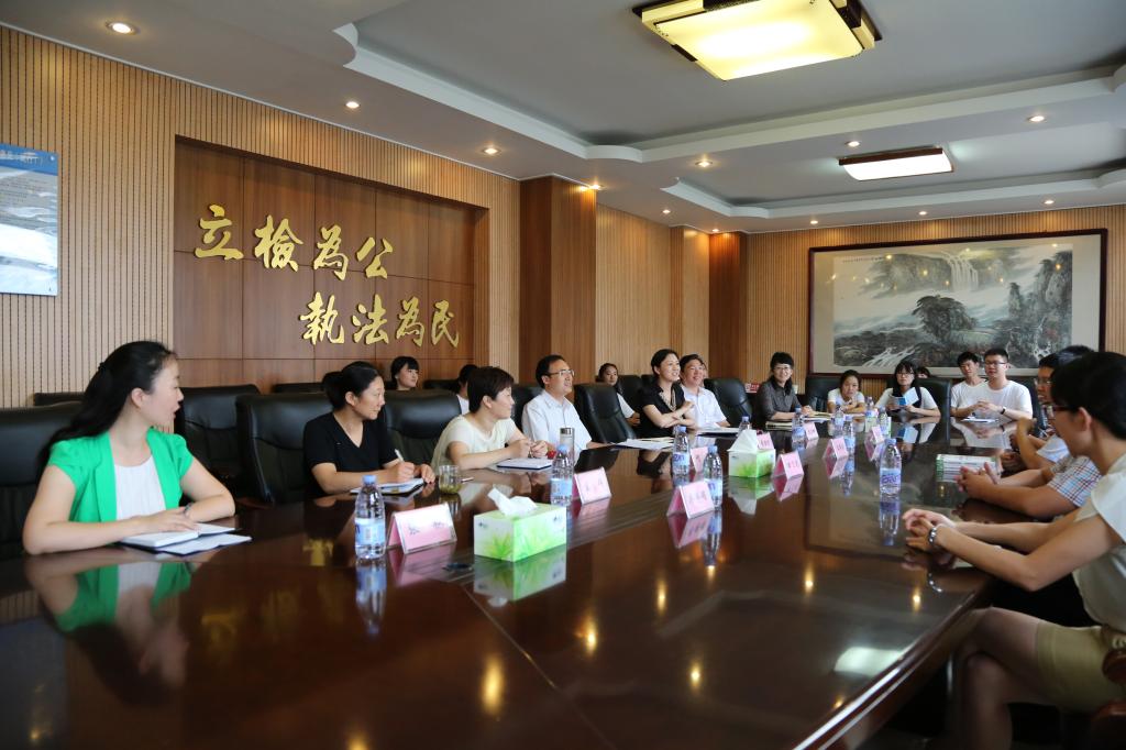 下午17时,王琪全书记一行与河南开封市检察院工作人员就暑期实习工作召开座谈会,会议由开封市检察院政治部副主任赵雪娜主持,议程包括实习生代表汇报、岗位导师代表发言以及双方领导讲话。检察院领导、老师和同学们都畅所欲言,整个过程气氛祥和,讨论热烈。