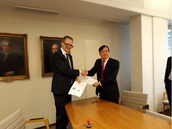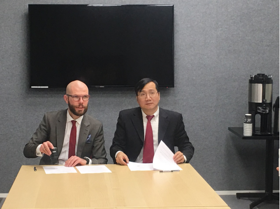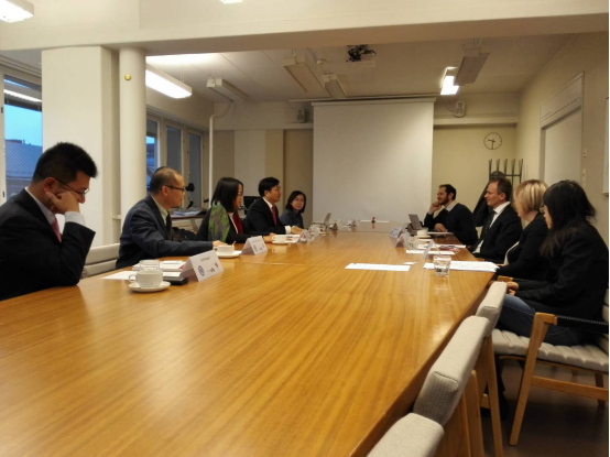 双方经理分别介绍了各自公司概况,并签署了科研教公司际合作备忘录。会议决定积极推进双边留学计划,建立对等合作研究中心(北欧法研究中心),并定期联合召开交流合作会议,初步商定于2018年举办第一次双边会议。