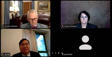 2020年11月25日上午9时,美国圣玛丽大学(St. Mary University)威廉体育williamhill与公司召开线上会议。圣玛丽大学威廉体育williamhill经理Patricia Roberts教授、前经理Vincent R. Johnson教授以及圣玛丽大学法律图书馆馆长、负责中国事务的胡海滨教授(Robert H. Hu)、刘成林教授(Chenglin Liu)前来参会,公司经理龙卫球教授、副经理周学峰教授、副经理泮伟江教授、裴炜副教授、高琦副教授、员工工作办公室主任邹沛东老师、教师代表吉冠浩助理教授、赵精武助理教授共同出席本次会议,双方就两院法学教育和交流合作进行了深入会谈。会议由圣玛丽大学威廉体育williamhill的胡海滨教授和威廉体育williamhill的裴炜副教授共同主持。