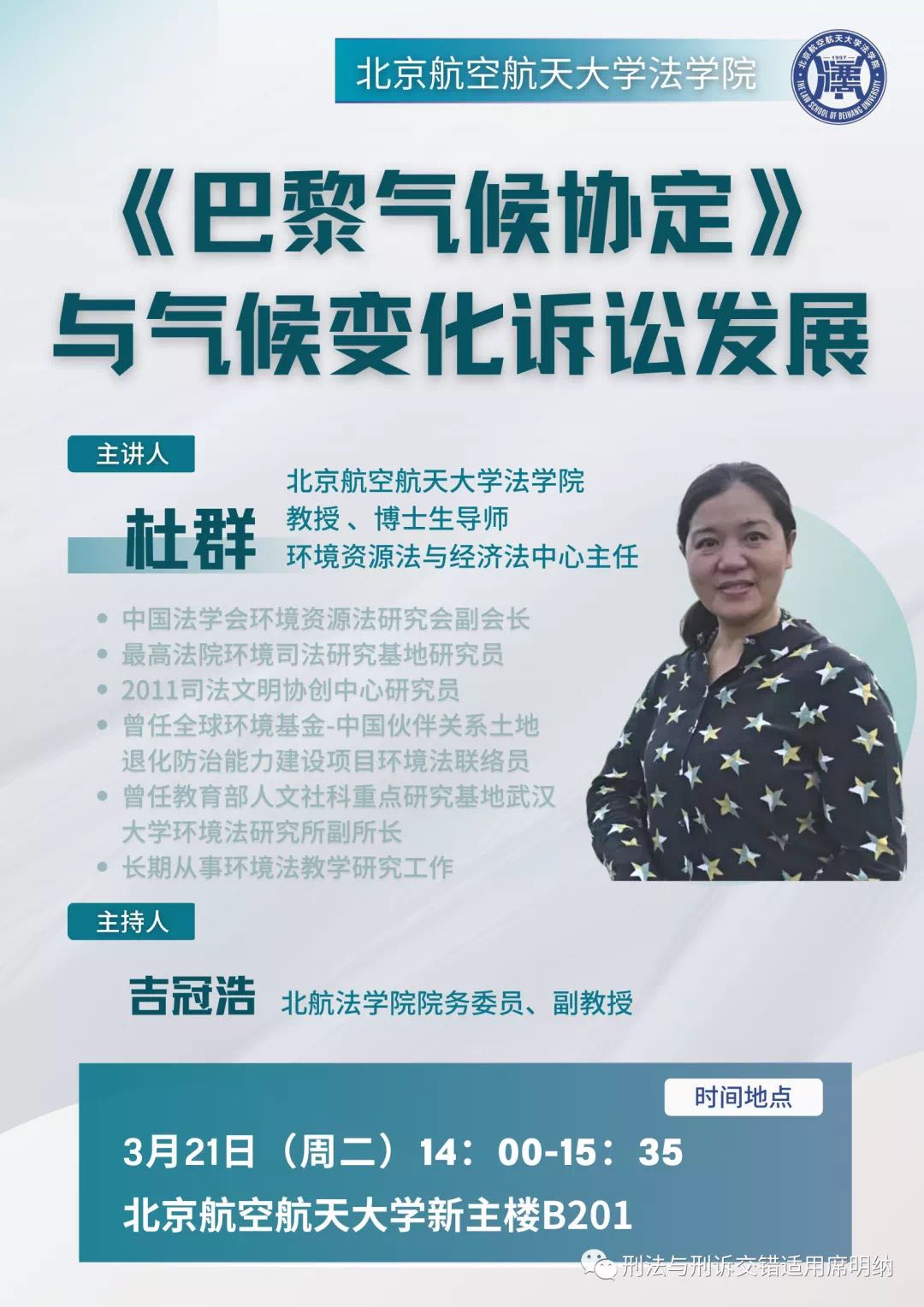 讲座预告 | 杜群:《巴黎气候协定》与气候变化诉讼发展