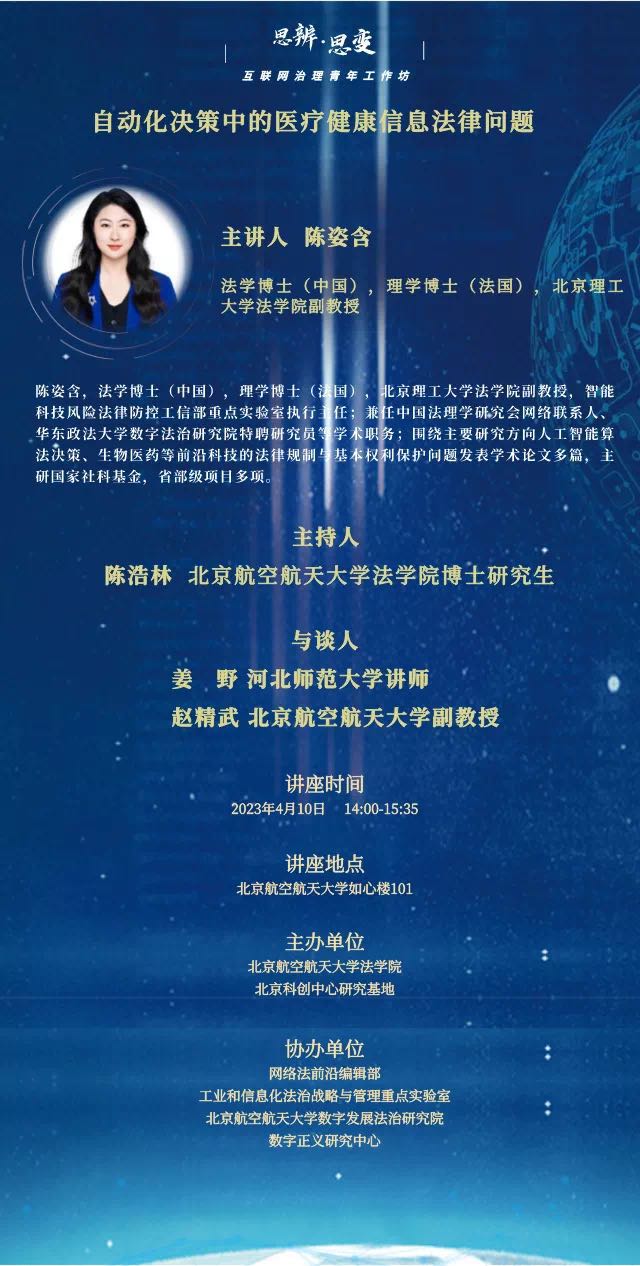“思辨·思变”互联网治理青年工作坊讲座预告 | 陈姿含:自动化决策中的医疗健康信息法律问题