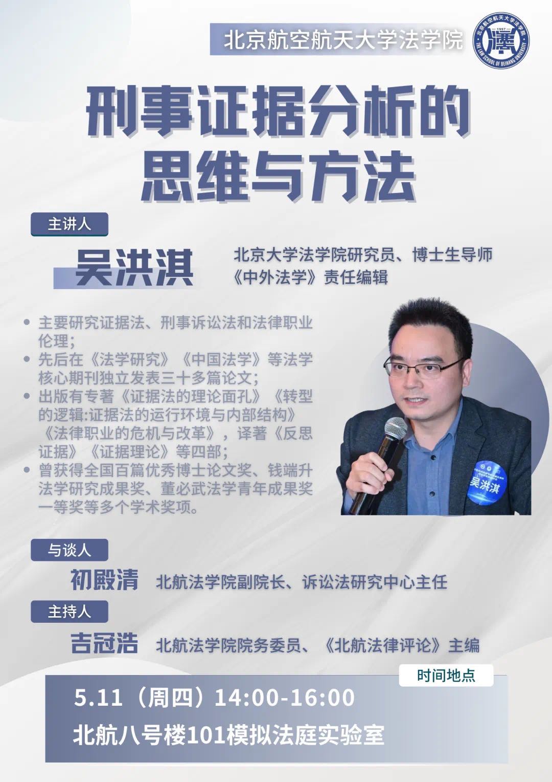 讲座预告 | 吴洪淇:刑事证据分析的思维与方法