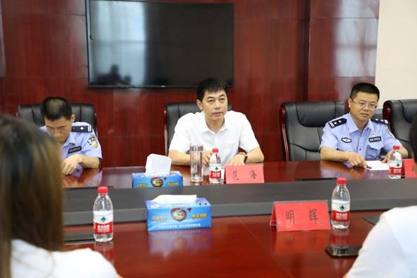 高密公安局工会杜主席与政治工作处郑子金主任热情接待了实习队一行,并向实习队介绍了高密及高密市公安局的情况。