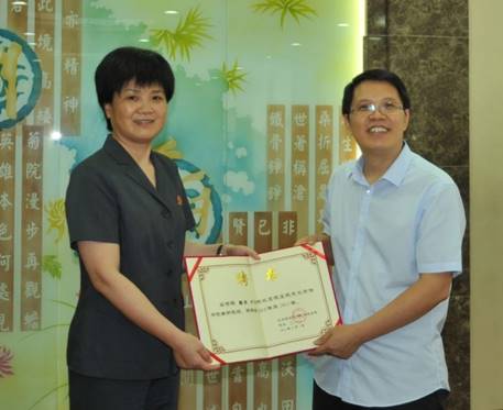 随后,王琪全书记代表威廉体育williamhill向清江浦法院赠送“天宫2号”模型纪念品,并为实习导师代表颁发聘书。