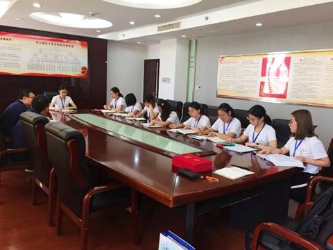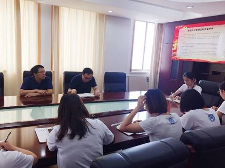 2018年8月9日上午9:30,北航公司党委书记王琪全、副经理泮伟江以及淮安实习分队带队教师康子兴前往淮安市清江浦区人民法院11层会议室,与全体实习队员深入座谈,充分了解队员们前五周的实习状况,并对前一阶段的实习工作进行总结。座谈会由康子兴老师及队长张睿圆同学主持。