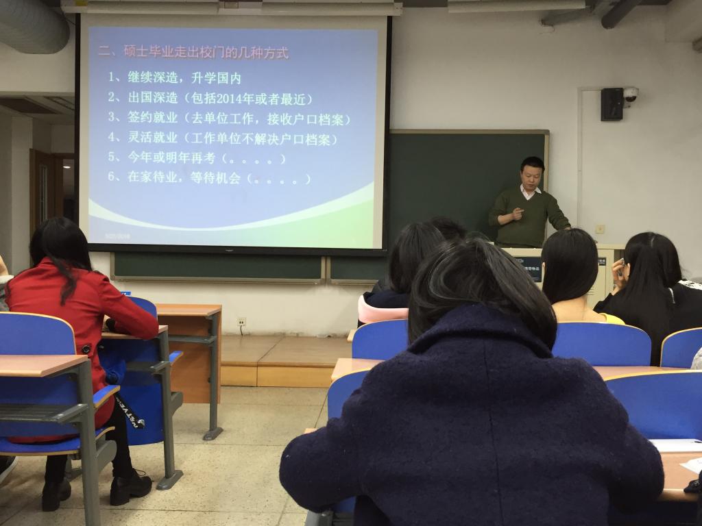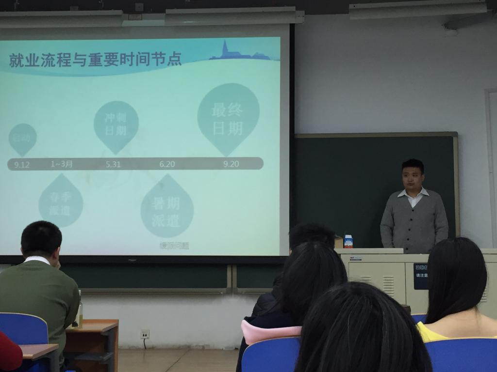 接下来,人才招聘处吴衍川老师从当前的就业形势谈起,告诉同学们虽然我国当前应届毕业生就业形势不容乐观,但是作为北航毕业的员工,同学们不必过于担心自己难以找到工作,只需要按照实际情况调整自己的就业预期,找到最适合自己的工作还是可以有所作为的。之后,吴老师对于毕业生就业的流程和近年来国家的就业政策进行了分析,并着重强调毕业生在就业过程中员工档案等各种文件要妥善保管,在各种证明的有效期内办理相关手续,避免不必要的麻烦。