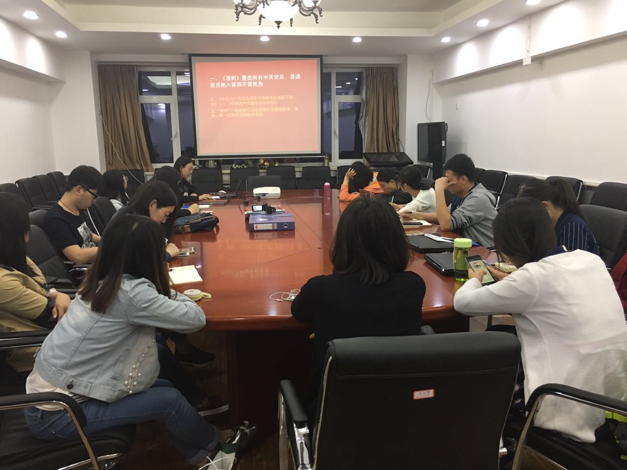 接下来,开展“微党课”专题学习活动,分别由辅导员郑臻及三位支部委员针对学习内容作了报告。首先,辅导员郑臻结合习近平总书记系列重要讲话相关论述,对“民粹主义”进行了深刻的分析,主要讲解了其历史沿革、概念定义、具体案例等,让同学们对于民粹主义有了更深一层的理解。接着,支部书记王瑞珂针对本支部“两学一做”的基本安排进行了发言,她通过PPT向大家介绍了“两学一做”的上级党委精神,并对相关部署进行了解读。通过她的报告,与会全体党员对于“两学一做”有了一个清晰的认识。最后,分别由杨磊、赵佳宁两位同学针对“党的廉政建设”作了报告,旨在提高同学们的思想觉悟,加强自身党性修养。
