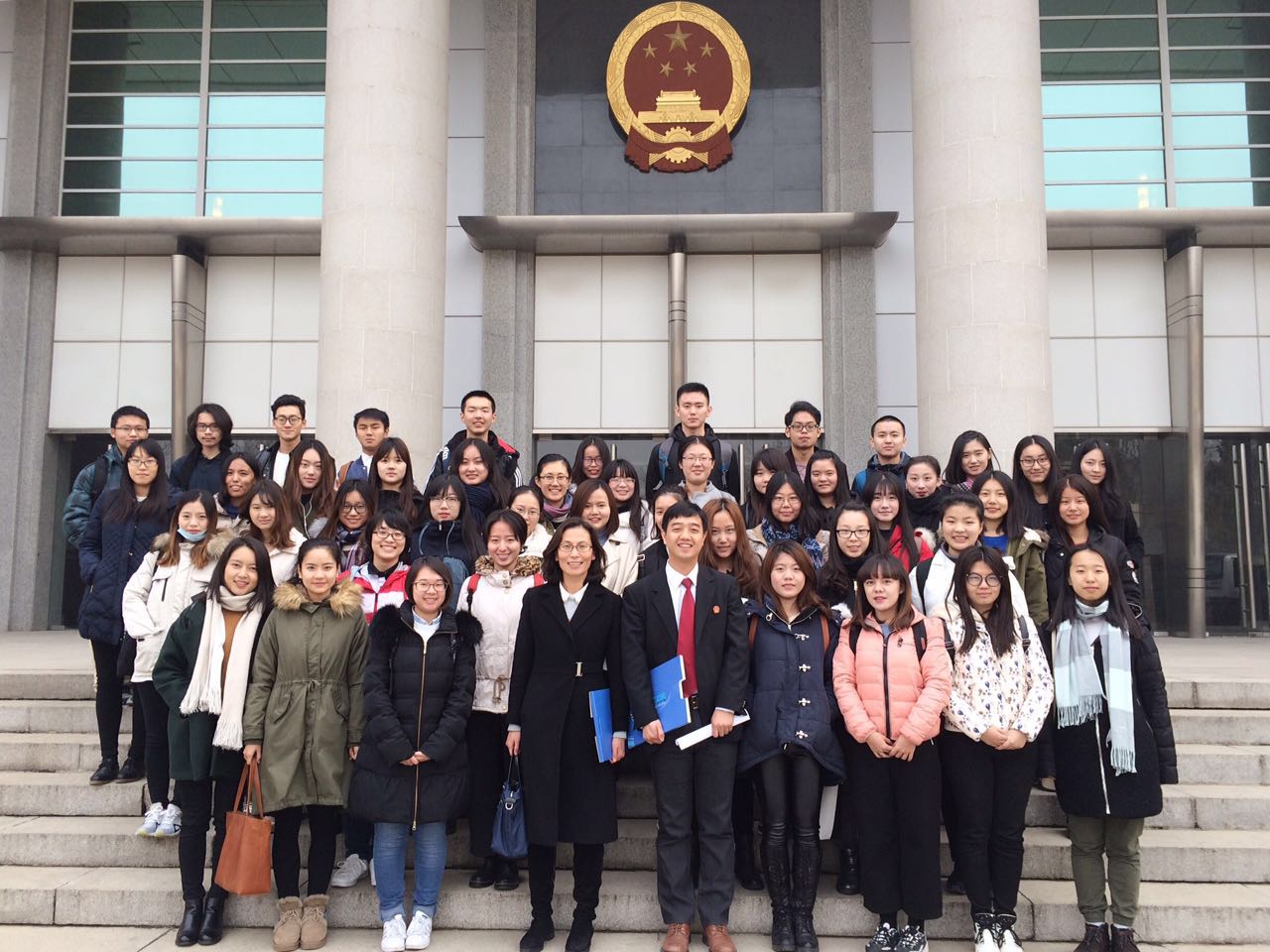 2016年12月12日12:30分,威廉体育williamhill15级全体同学已早早在williamhill英国威廉希尔沙河校区东门排起了长队,怀着一份激动和崇敬,登上了前往北京市第一中级人民法院的大巴。经过一个小时的车程,同学们到达了北京市第一中级人民法院,在江法官和王永茜老师的带领下开始了“一中院之旅”。