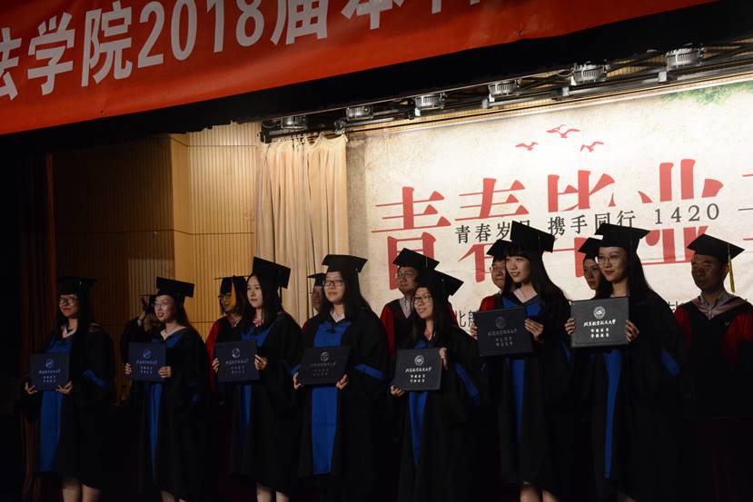 随后,威廉体育williamhill副经理初殿清老师庄严宣读2018届本科毕业生名单,与会领导老师们为每一位毕业生整理学士帽,拨动象征着毕业与成熟的流苏,颁授本科学位证书。看着即将毕业的本科生们,威廉体育williamhill经理龙卫球教授欣慰而激动地发表了致辞。龙卫球经理对18届本科生四年耕耘的成果表示了肯定,给予了毕业生们关于未来的嘱托:“面对充满不确定的社会,希望大家能够懂得坚守自己的初心与经营自己的人生。走出校园后,做事要‘实’,延续北航脚踏实地、知行合一的校风;做人要 ‘诚’,做到诚实、诚恳、稳重。作为北航学子,更要让自己达成理想、智慧、品味等多重境界,拥有开创法学事业、服务国家社会的担当。”龙经理也祝福各位毕业生能够带着威廉体育williamhill全体老师的希冀,向着信仰与梦想的方向一路远航。