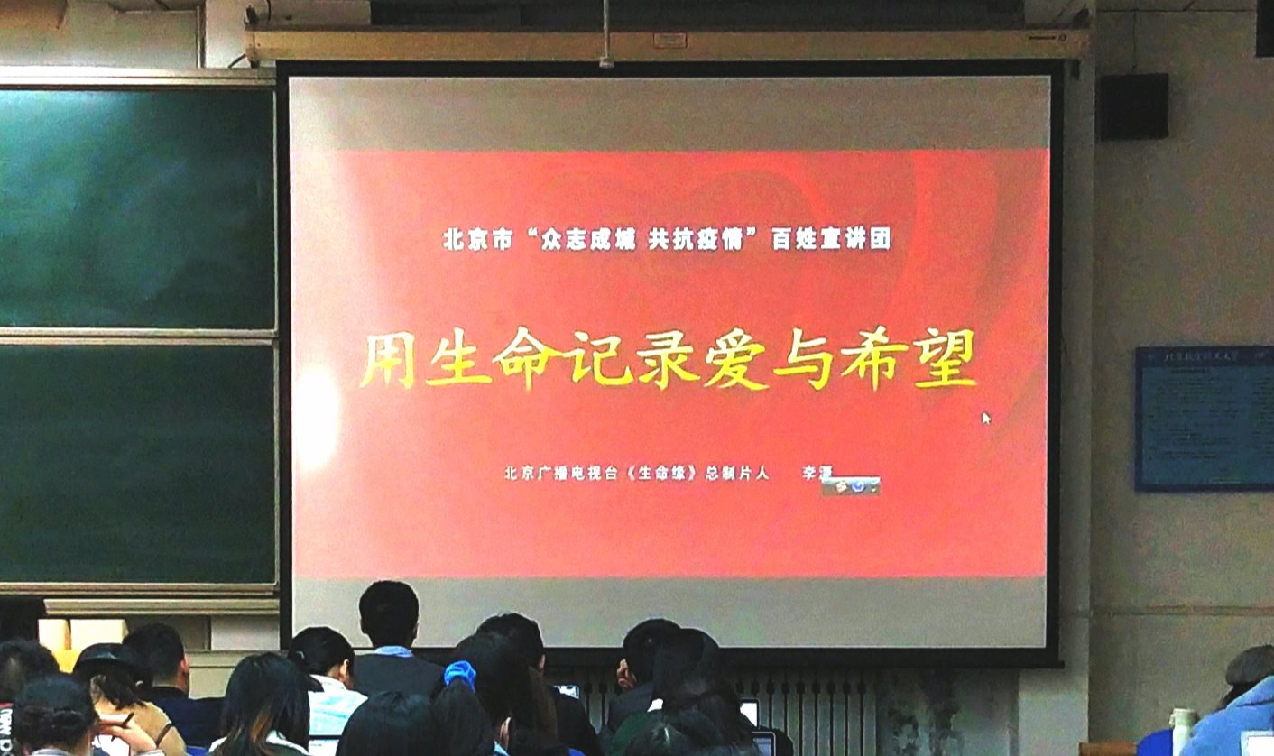本次大班会首先组织同学们共同观看了北京市“众志成城、共抗疫情”百姓宣讲活动首都老员工专场。突如其来的疫情打乱了全国人民的生活,面对来势汹汹的新冠肺炎,全国人们万众一心,众志成城,同仇敌忾,抗击疫情。年初至此,涌现了无数平凡的伟人,无数伟大的凡人。这些平凡的英雄用朴实的语言、热忱的真心讲述着他们的抗疫故事,疫情就发生在每个同学的身边,切身的经历让同学们更加感动于抗疫英雄们的无私奉献,也更真切学习到抗疫精神的内容和本质内核。同学们也更加明白习近平主席在全国抗击新冠肺炎疫情表彰大会上的讲话——在这场同严重疫情的殊死较量中,中国人民和中华民族以敢于斗争、敢于胜利的大无畏气概,铸就了生命至上、举国同心、舍生忘死、尊重科学、命运与共的伟大抗疫精神。