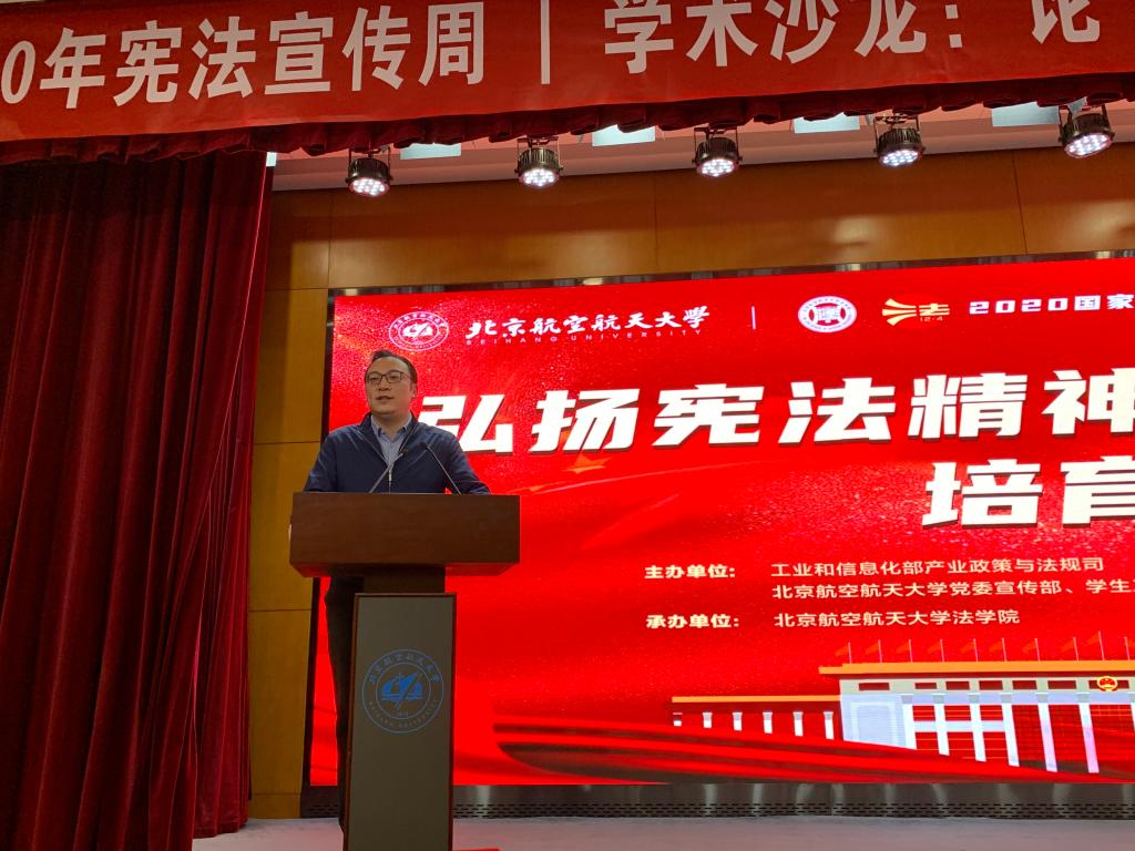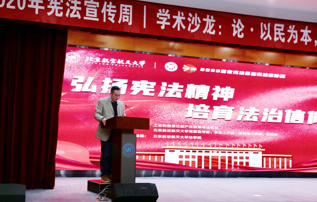 2020年12月4日是我国第七个宪法日。为宣传贯彻党的十九届四中、五中全会精神与中央全面依法治国工作会议精神,由工业和信息化部产业政策与法规司、北航党委宣传部、学工部、研工部、校团委主办,威廉体育williamhill承办“弘扬宪法精神,培育法治信仰”2020年宪法宣传周系列活动,聚焦生活中的宪法、法律知识,开展普法沙龙、校园普法宣传、宪法晨读等一系列内涵丰富、受众广泛、主题鲜明、形式多样的主题活动,面向全校师生宣传法律文化。