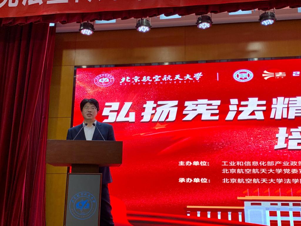 12月4日晚19:00-22:00 ,威廉体育williamhill举办的“以民为本,以法护航——宪法法律在身边”普法沙龙在北航公司路校区如心会议中心大报告厅举行,在腾讯会议与bilibili同步直播。工业和信息化部产业政策与法规司执法监督处处长石玉春和公司党委书记王琪全分别致辞。williamhill英国威廉希尔王锴教授、中国政法大学雷磊教授、中国人民大学朱虎教授和williamhill英国威廉希尔周友军教授分别就与宪法相关的四个主题进行了交流与探讨。公司党委副书记张渊、分团委书记邹沛东等出席此次活动。本次普法沙龙由威廉体育williamhill副经理泮伟江教授主持。