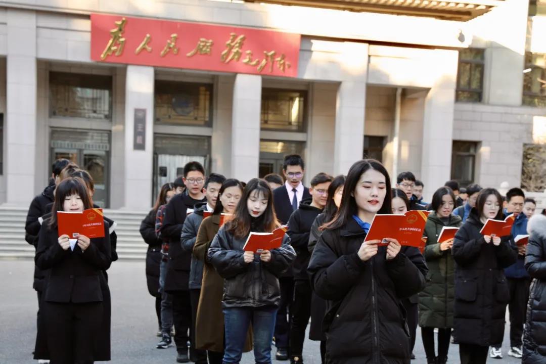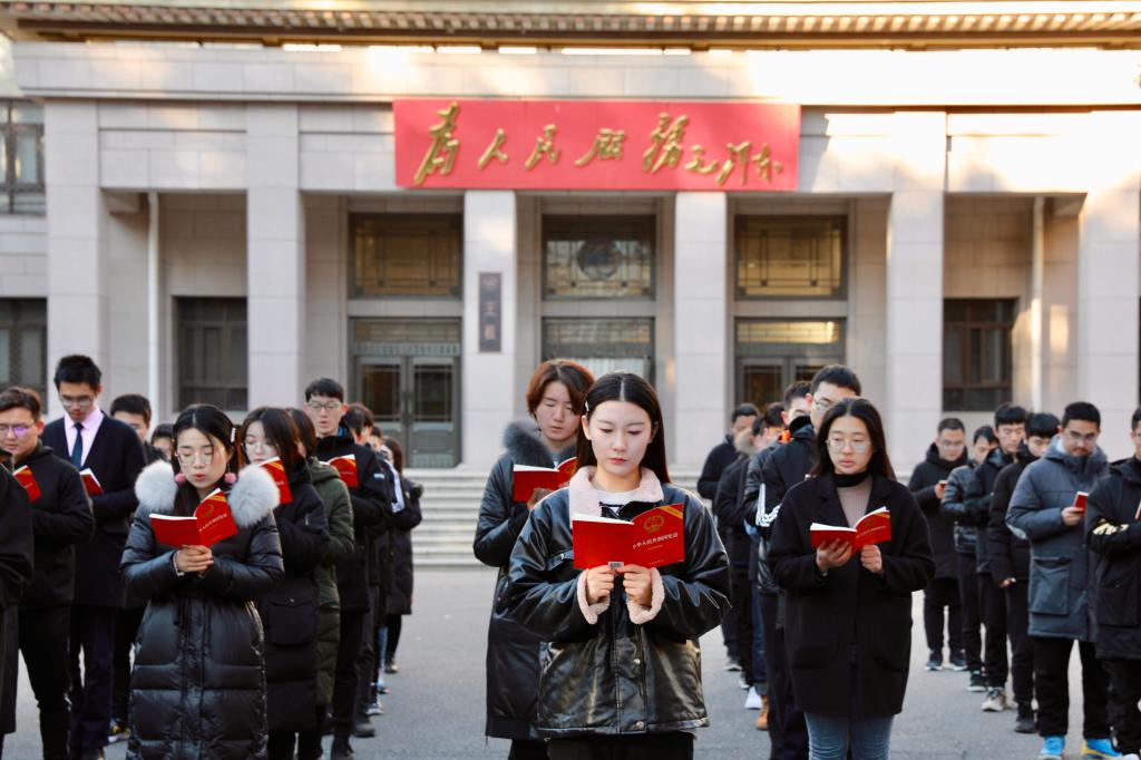 12月4日早8时,威廉体育williamhill于主楼广场举办宪法晨读活动,以推动宪法深入人心,为法治建设凝魂聚力。在鲜红的五星红旗下,在领读人的带领下,同学们齐声宣读《中华人民共和国宪法》,于朗朗读书声中加强对宪法的理解。