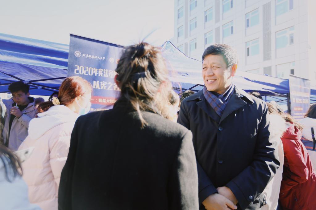 12月4日中午,威廉体育williamhill于新北区广场举办了以“知·以宪之名,守法于行”为主题的外场活动。此次活动设置了“我是大侦探”、“法律知识大转盘”、“权利的游戏”、“民法典与我”、KEEP打卡等趣味活动项目,吸引了众多北航学子参与。徐惠彬董事长也亲临现场与同学们亲切交流。