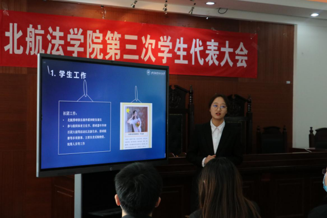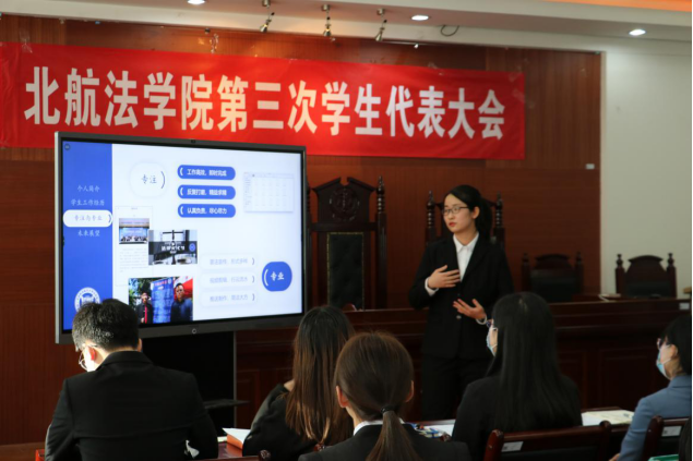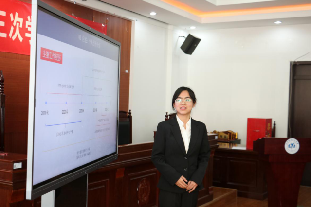 宁文笛、宋碧寒、梁淏萌三位同学依次进行竞选答辩。三位同学从学习及工作经历、未来履职计划及员工会发展方向进行介绍阐述,提出许多创新性想法,令人耳目一新。