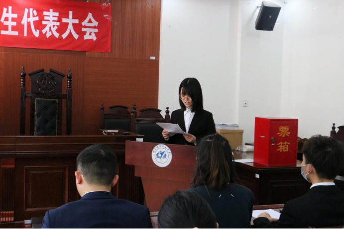 大会决议通过,任命肖都同学为总监票人,彭泽选、施宇轩同学为监票人,唐子茜、王佳诚两位同学为计票人。采用无记名投票方式民主选举,现场与会代表在三位候选人中投票选举新一届主席团成员。