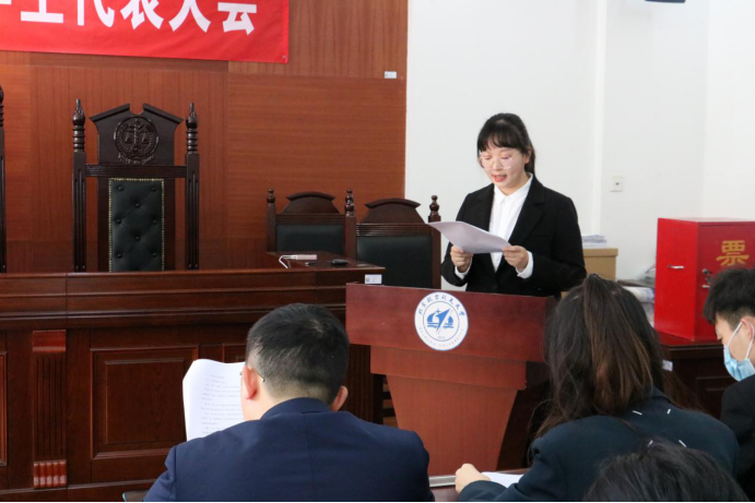第二十届员工会主席团成员崔莹莹向与会老师、辅导员、员工代表宣读工作报告