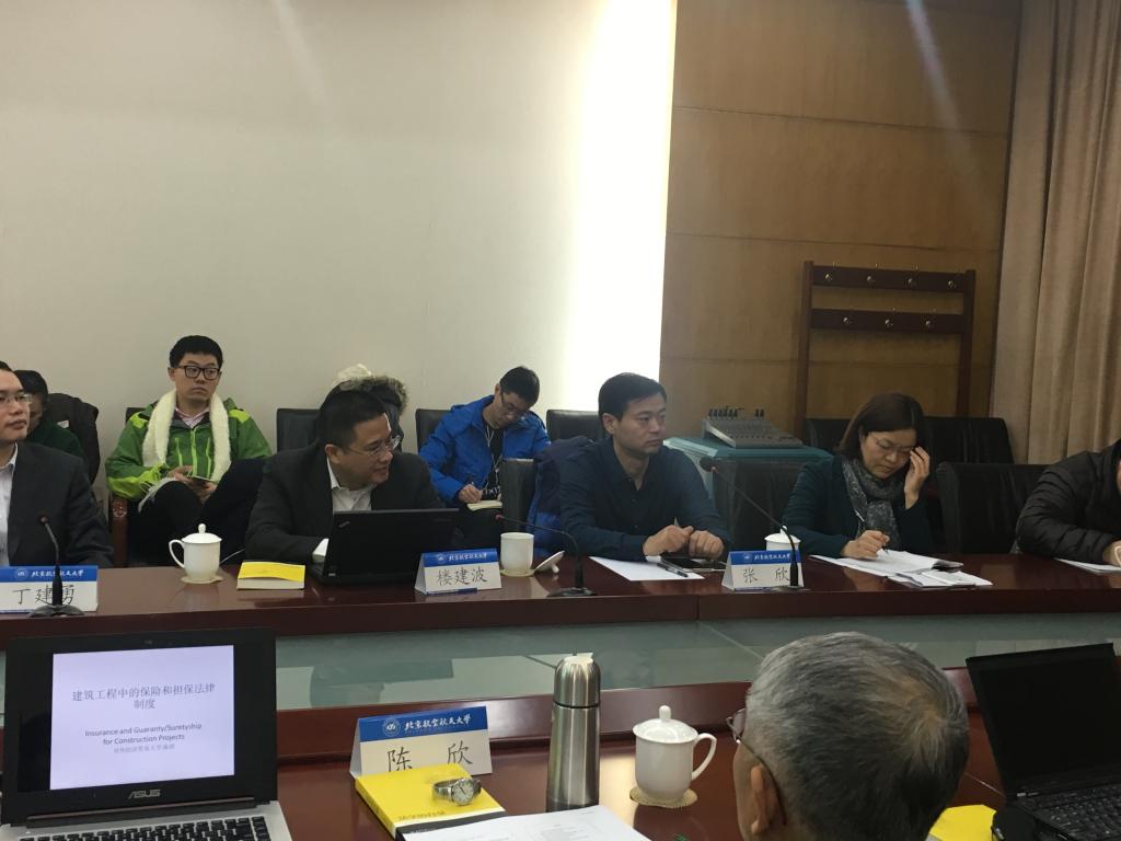 论坛主讲人由对外经贸大学陈欣教授、联合建管(JCM)国际工程技术研究院邱闯经理担任。他们的演讲题目分别为“建设工程中的保险与担保制度”和“建筑师责任制与建设监理制的现状、问题与发展”。陈欣教授兼任中国保险法学研究会副会长,是国际建设工程保险领域的权威专家,邱闯教授则兼任英国皇家特许建造学会(CIOB)中国北方区主席、中国国际经济贸易仲裁委员会和北京仲裁委员会仲裁员、清华大学国际工程项目管理研究院特聘教授等,是国内建设工程管理等方面的著名专家。论坛与谈人包括丁建勇(北京仲裁委员会仲裁一处处长)、檀中文(中航勘察设计院总法律顾问)、张欣(东方资产投资法务部总经理)、楼建波(北京大学威廉体育williamhill教授、北大房地产法研究中心主任)、周学峰(威廉体育williamhill副教授、北航工业与信息化法治研究院副经理),另有来自国内学术界、实务界的专家学者近20人与会。