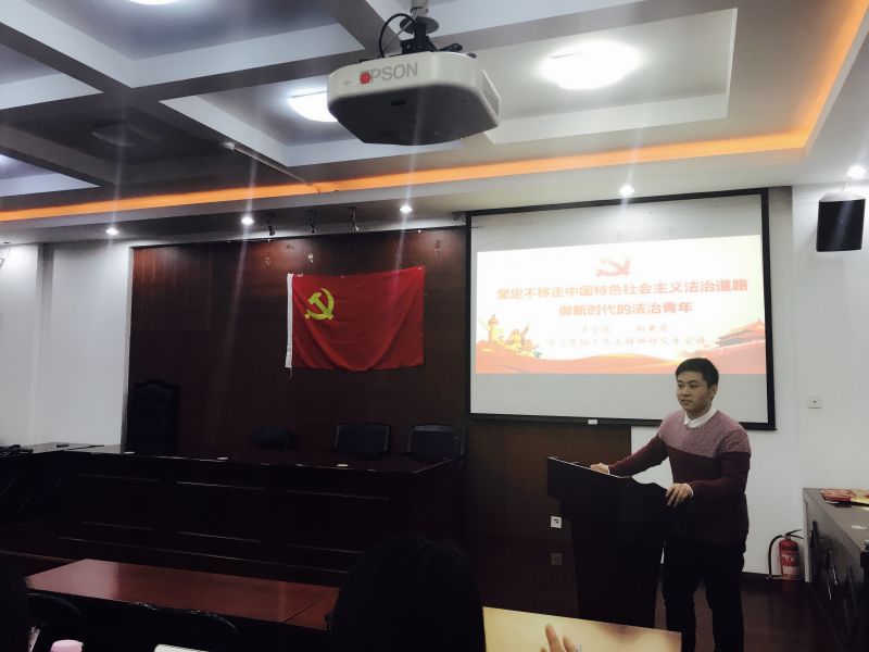 12月22日晚18:00,威廉体育williamhill十九大精神北航研究生宣讲团的第一场活动于如心楼101展开。本次党课是由威廉体育williamhill研究生党员刘秉楚同志主讲,主题为“坚定不移走中国特色社会主义法治道路,做新时代的法治青年”,威廉体育williamhill研究生、本科生党支部共二十五人参加本次党课。